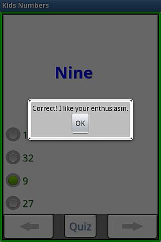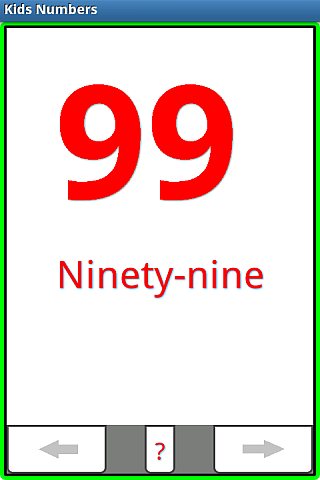 Kids Numbers application is developed by ZAPRA Development Team. This is useful for children to learn numbers numeric and spelled out. This simple application can help to learn numbers very quickly and effectively. This will display max of 100 numbers with spelled out. It can customized to LIMIT the max number. This has quiz option to check the kids memory skill for numbers.