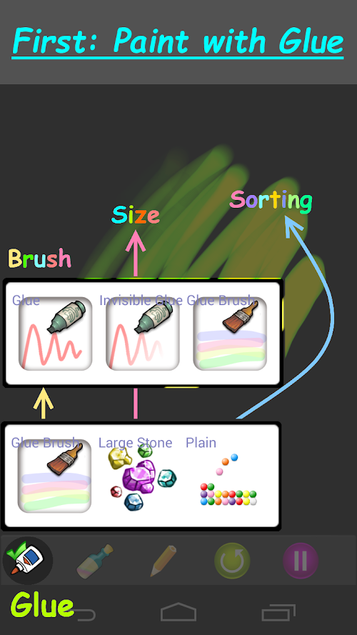 * First, use different types of Glue brushes to draw the graphs or outlines;