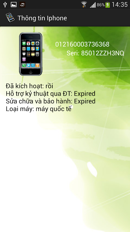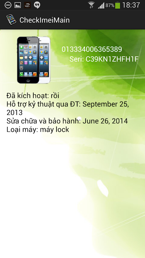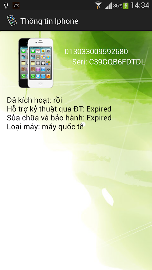 Application Vietnam launched an app quickly lookup information for device IMEI and serial Iphone.