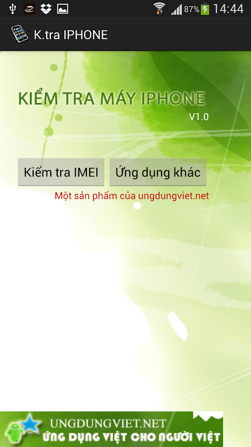 Xem thêm ứng dụng tại: http://ungdungviet.net/Application Testing helps IPHONE IPHONE check information via IMEI (Vietnamese application | applications written). In some cases you need to check the machine information in the hands immediately and only phone or android tablet, this app will suit you.