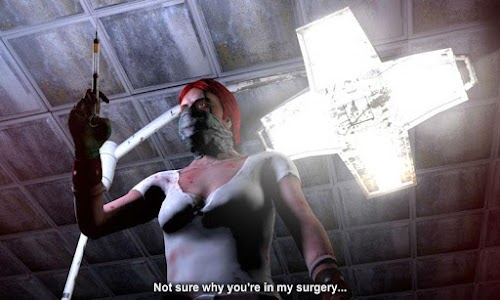 Greeted by a blood soaked floor and some doors with ‘The surgery’ written on them you have no choice but to go through them. There is no way back, only onwards and upwards!