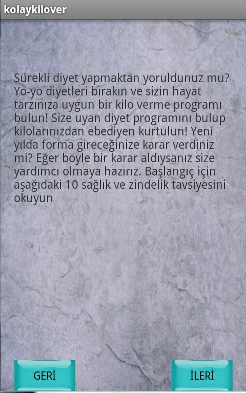 If you are looking to download other versions of KİLO VERMENİN 10 KURALI Android App, We have 1 version in our database. Please select one of them below to download.