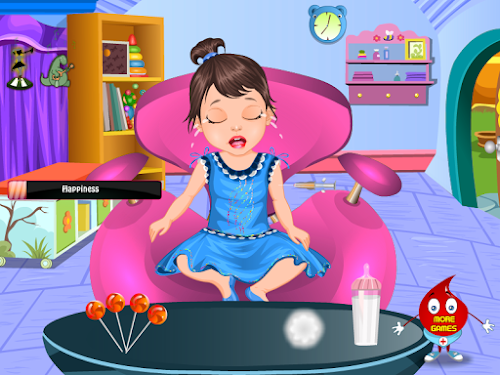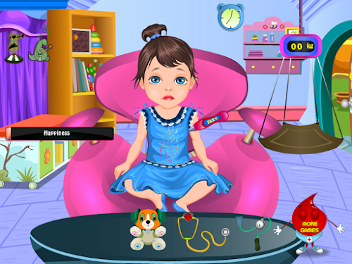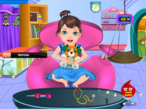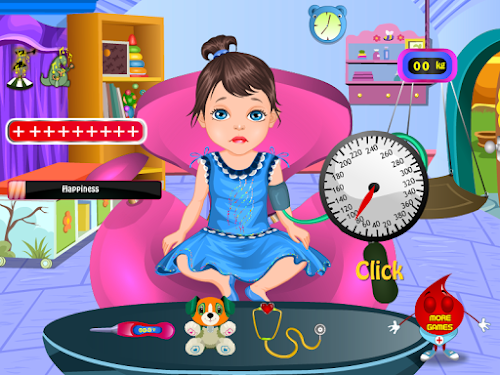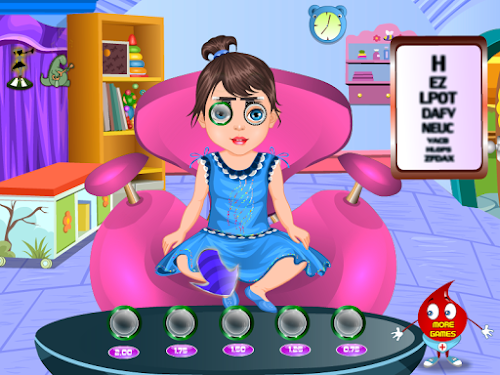 Annie was playing in the kindergarten when she heared that a new doctor must come to children to make them a little inspection to see if they are ready to start the kindergarten year. Annie is afraid of doctors so we have to help her to spend time with him as relaxed as not to be scared while the doctor a control so you have to give him some toys that wield them while the doctor does the job. First you must arrange letters into a proper order to create some words, and then must we take temperature, check his pulse, his measure heartbeat and finally have to weigh. Then we will administer an injection of anti-flu while we'll give candy to worrying about something else while we make them shot. Next We need to measure the diameter of the head to see if it has a normal size and we will give you a cookie as a reward for being good so far. We need to see if Annie is forced to wear glasses so we will seek some diopters. Please try other games for girls in this category of games to test your skills in caring for small children.