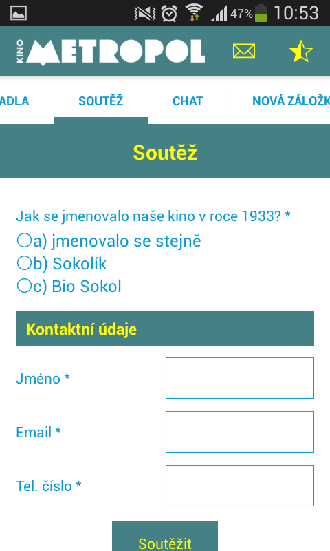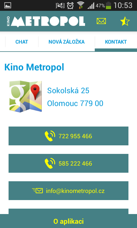 Aplikace je vytvořená pomocí služby ADAM - www.ADAMAPP.cz. Kino Metropol is the last classic cinema in Manchester. Cinema in the heart of historic and university Moravian metropolis was founded in 1933 and has since changed its name several times. It was founded as Bio Sokol under the leadership of the Cooperative for construction Sokol, a little later renamed the Aero, but also cinema Border Guard. After the revolution revived Metropol name under which it unofficially already perceived by the Olomouc thirties and forties. Today Metropol will then be summarized in a simple trojslovím - your home theater. Kino, which may be a place for leisure, meeting with friends and family, acquaintances. Kino, which visitors are able to define themselves.