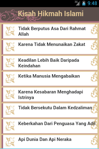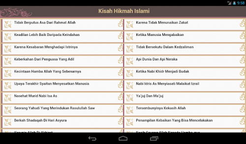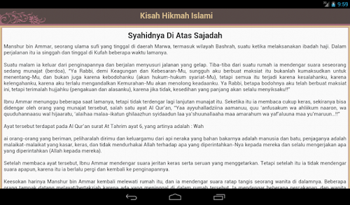 In the application there is a 80 + story Islamic Wisdom. The story is an example of Islam we collect from the writings contained in the Internet, hoping to be a material reflection to increase our faith and love of Allah and the Prophet Muhammad.