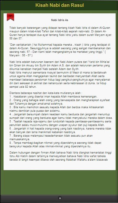 Download Aplikasi Kisah Nabi dan Rasul sekarang juga!Lately a lot of kids to teenagers who are more interested in the story of superheroes like Superman, Batman, Spiderman and many more than learn the stories of the prophets and messengers. This is a social concerns should we lift into the most important topics in the social life of our day-to-day.