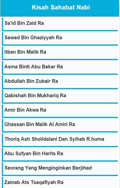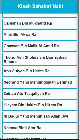 Aplikasi Kisah Sahabat Nabi berisi cukup banyak kisah, yaitu lebih dari 200 kisah Sahabat Nabi. Dengan perkembangan teknologi, kami bawa kisah Sahabat Nabi ini ke aplikasi Android. Agar Anda beserta putra putri anda dapat membaca kisah ini dengan mudah dari ponsel pintar kita.