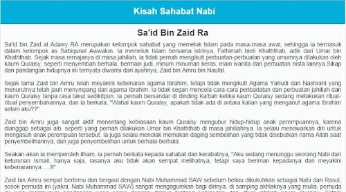 Banyak sekali pelajaran yang dapat kita ambil dari kisah-kisah para Sahabat Nabi Muhammad SAW yang berjuang sekuat tenaga menegakkan panji-panji Islam diseluruh dunia. Kisah heroik perjuangan para mujahidin dalam membela agama Allah SWT.