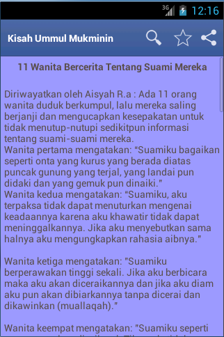 Dalam Aplikasi ini berisi tentang kisah-kisah seputar Ummul Mukminin, yang kami ambil dari berbagai hadits shahih