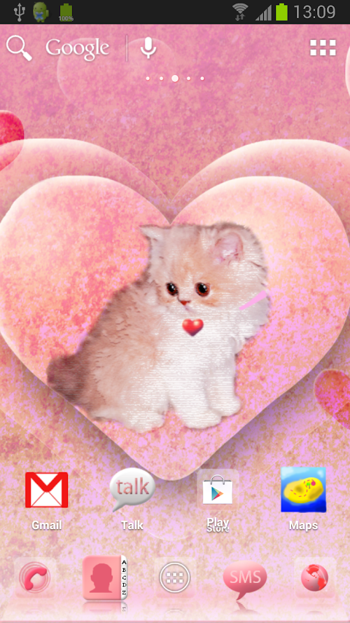 Morif with a kitten. Wallpaper is a sweet little cat in a pink heart on a pink background. The main menu background application is also a charming white kitten. Each icon has a transparent background pink tile, more important icons are listed on the pink. If you're a fan of animals, but most cats like this app you might enjoy. The application is also directed to girls and children. Download now free of charge application. If you like See also Einne our products with the same or a similar theme.