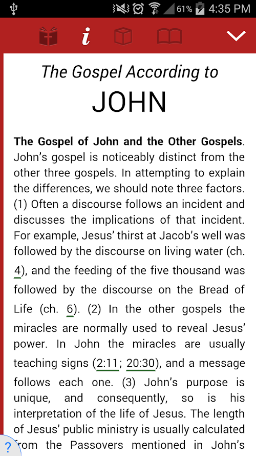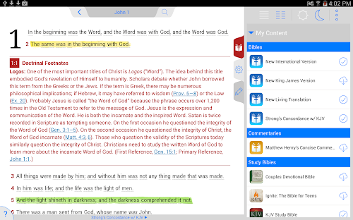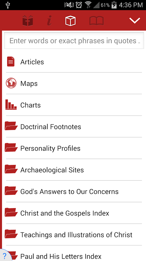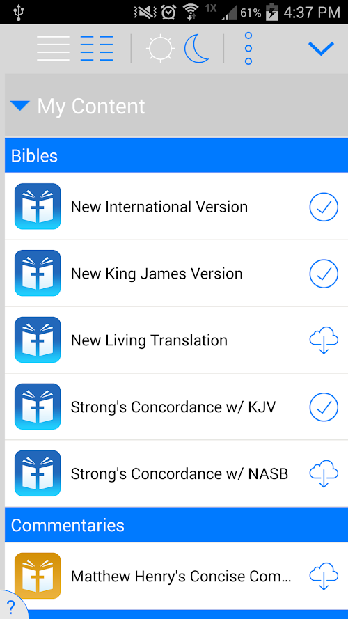 - No internet connection needed for downloaded Bibles, Study Bibles, Commentaries and Devotionals