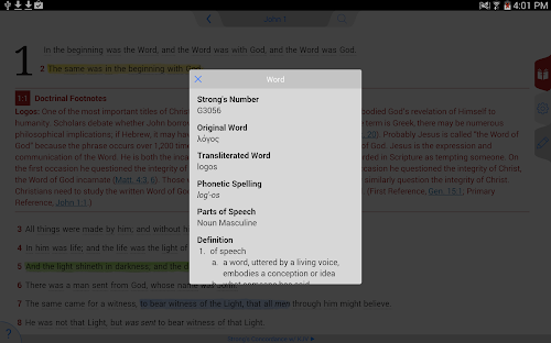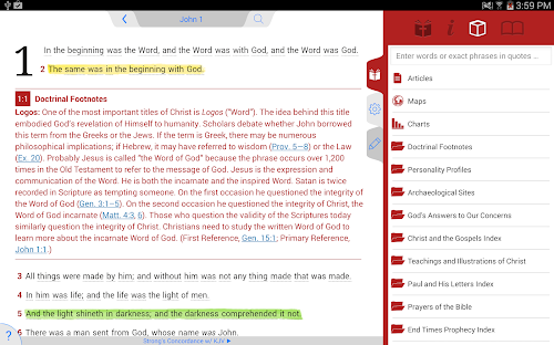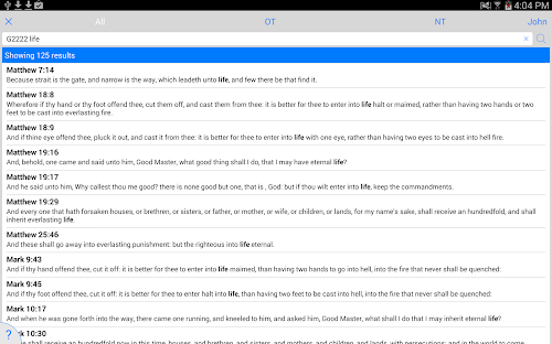 - Full-text search by OT, NT or current book allows users to quickly find words and study topics