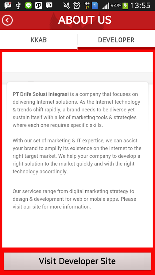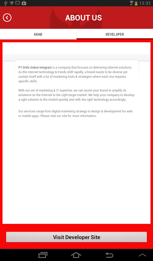 Kami tim developer sangat terbuka bagi pengguna untuk memberikan review terhadap aplikasi ini. Feedback dapat dikirimkan melalui email ke [email protected]. Terimakasih.Kkab news Android Apps are applications of "Our Community Nations Children". This application will contain information from the web kkab, and will receive notifications when there are updates article.