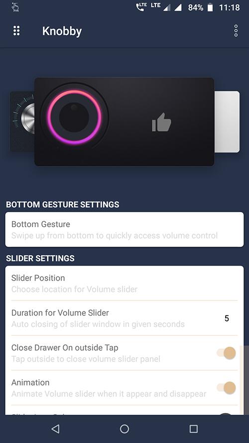 Knobby is just one swipe away, with gesture control you can quickly open volume control slider from any app. its runs on top of the other apps.