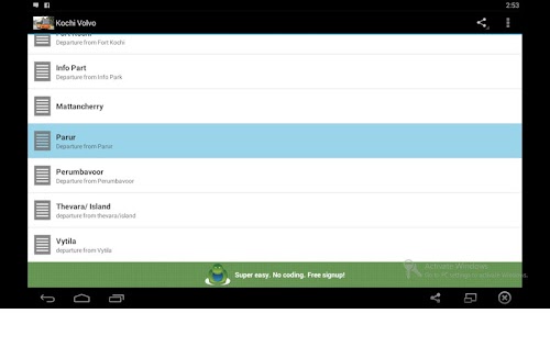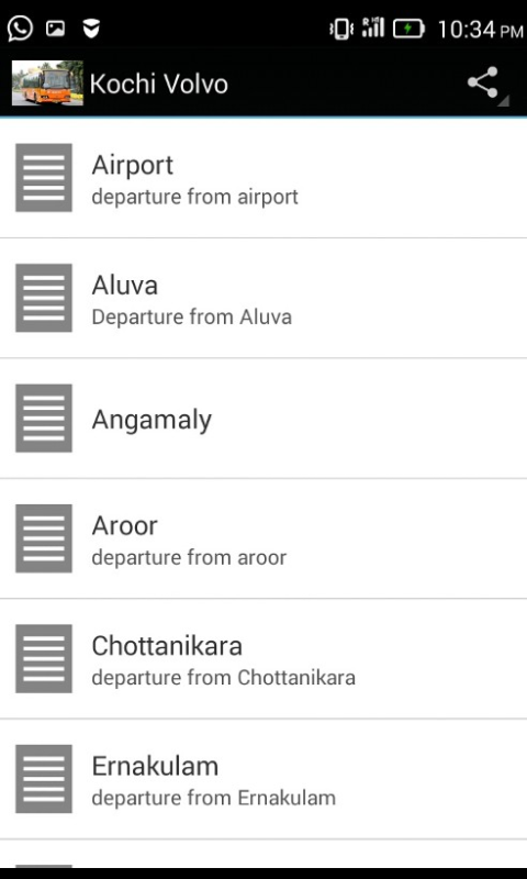 This app is for the bus timings of KSRTC's Volvo bus services for the city of Kochi. ( intra-city only)
