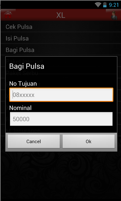 Aplikasi mendukung seluruh operator di Indonesia diantaranya; telkomsel as, simpati, halo, indosat im3, mentari, xl, axis, tri, smartfren, flexi, esia.Frequent change-change no phone? forget the pulse check? with this small application that will not happen again. You no longer need to memorize the codes check pulse for all mobile operators in Indonesia. In fact, you no longer need to type in the code when it came to check pulse, pulse content, credit transfer, etc.. All just select menu and click on OK.