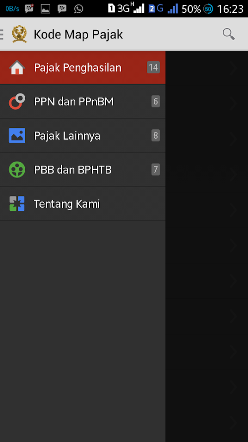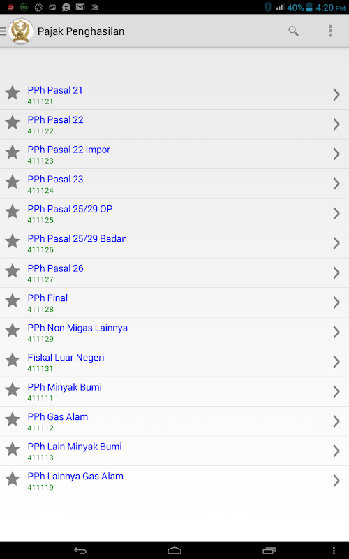Kami memberikan menu navigasi dan menu pencarian live yang mempercepat proses pencarian kode MAP dan Setoran Pajak yang anda inginkanThis application provides a search menu MAP and Tax Payment Code quickly and easily.
