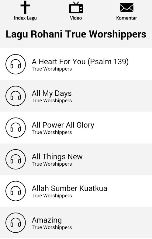 Dapatkan lirk-lirik lagu-lagu rohani kristiani / lagu-lagu gereja / lagu-lagu kidung pujian terbaik dalam App ini beserta alunan lagu yang bisa didengarkan langsung via streaming.