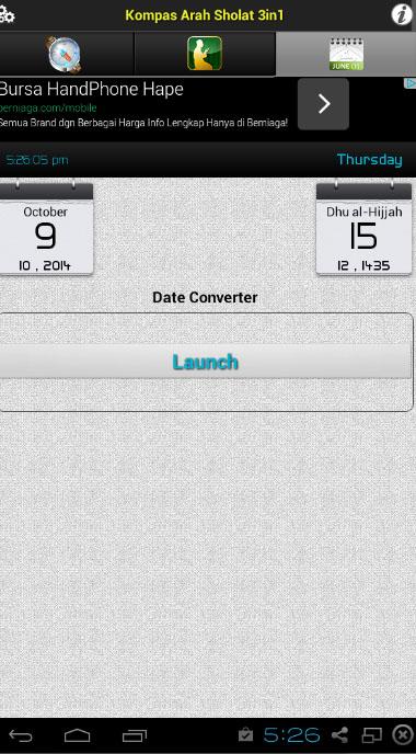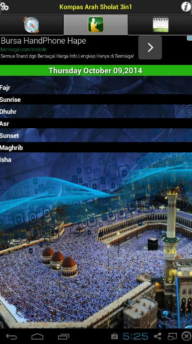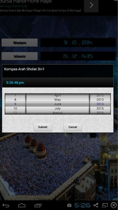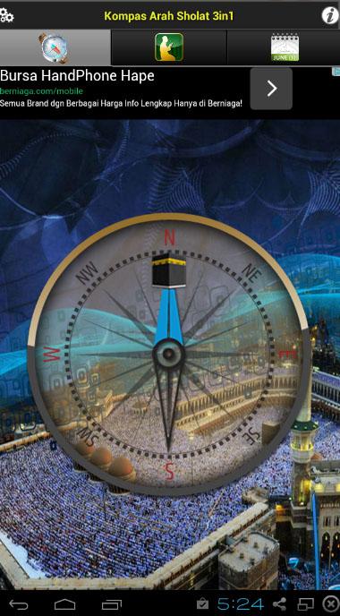 Kompas Penjunjuk Arah Kiblat untuk Sholat dan dilengkapi dengan penunjuk Waktu Sholat serta Kalender Hijriyah Converter