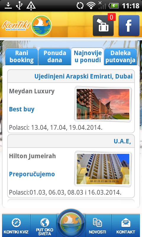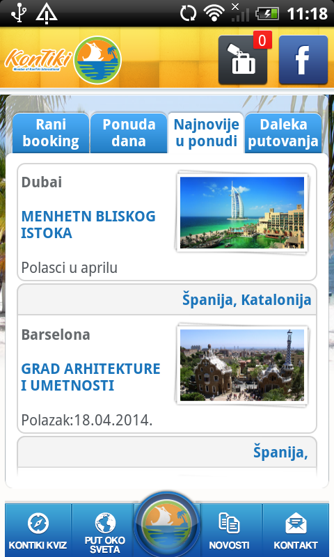 Uz pomoć aplikacije možete redovno pratiti najnovije ponude i destinacije koje je za Vas pripremio Kon Tiki kao i: