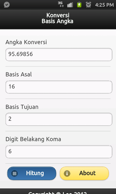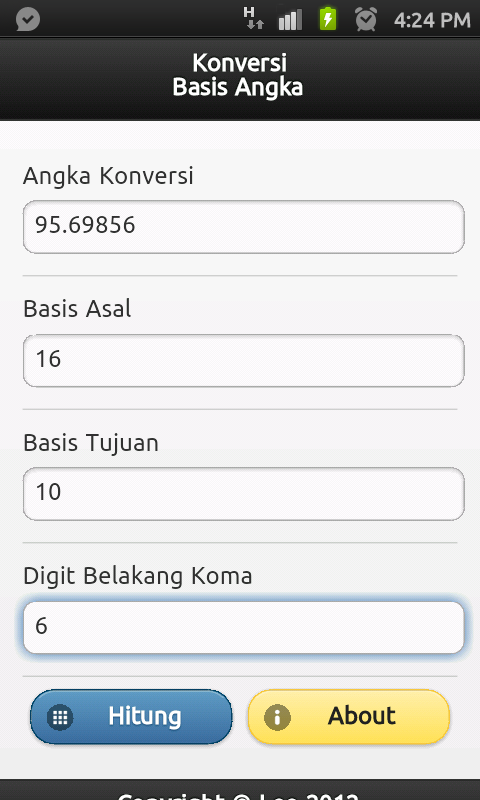 Aplikasi ini merupakan sebuah kalkulator sederhana yang berfungsi untuk melakukan konversi angka dari satu basis ke basis lainnya.