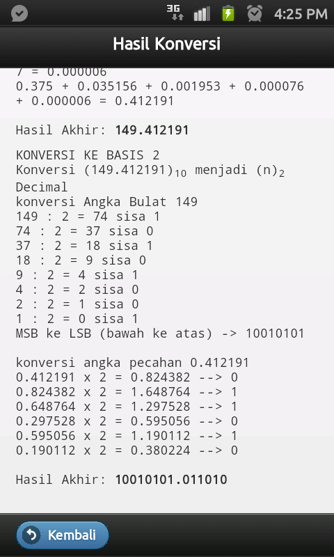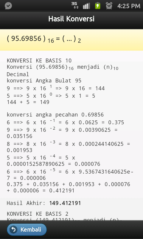 Bukan hanya melakukan konversi, aplikasi ini juga akan menunjukkan step-by-step perhitungan yang dilakukan, dengan tujuan agar dapat dimengerti oleh penggunanya, tentang bagaimana suatu hasil konversi didapatkan.