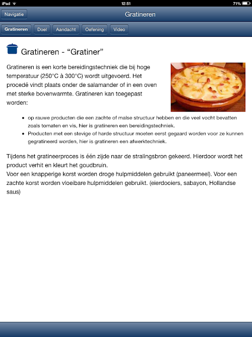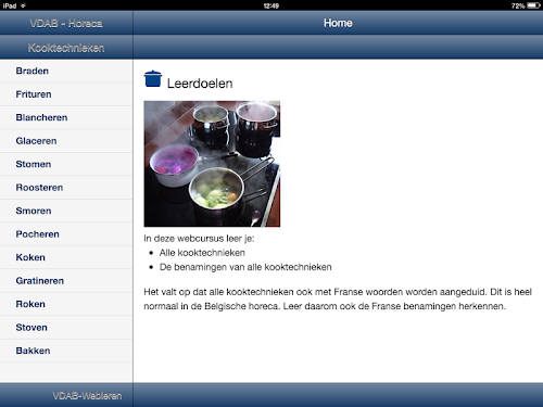 Het valt op dat alle kooktechnieken ook met Franse woorden worden aangeduid. Dit is heel normaal in de Belgische horeca. Leer daarom ook de Franse benamingen herkennen.All cooking techniques are explained with text and especially much footage.