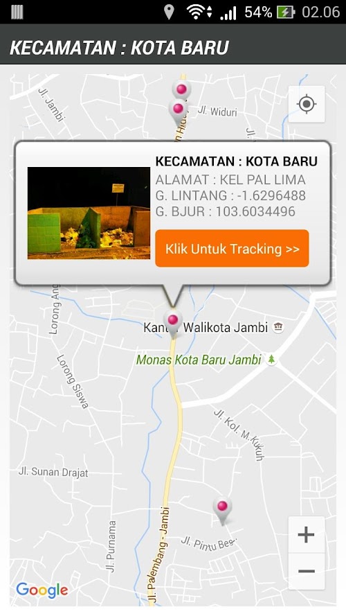 In Jambi Net Applications is that users can perform tracking waste disposal sites to be addressed. The way is easy, the user selects the menu location Trash> Select Subdistrict -> Then select the location nearest disposal of your locations at once.