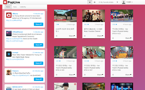 News and Music Videos of KPop Artists such as Super Junior, Bigbang, Girl's Generation, 2PM, SHINee, f(x), INFINITE, miss A, MBLAQ, 2NE1, BEAST, EXO-K, PSY, BAP, B.A.P, BEAST, ZEA, Girl's Day, Brown Eyed Girls, SS501, Busker BusKer, IU, TEEN TOP, 4minute, SNSD, S.N.S.D, MBLAQ, T-ARA, TVXQ, Tong Vfang Xin Qi, f(X)/fx, U Kiss, SISTAR, B1A4, JYJ, KARA, Secret, WONDER GIRLS, A PINK, G.NA, AFTER SCHOOL, 2AM, CNBLUE, Davichi, F.T ISLAND