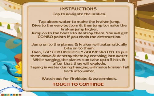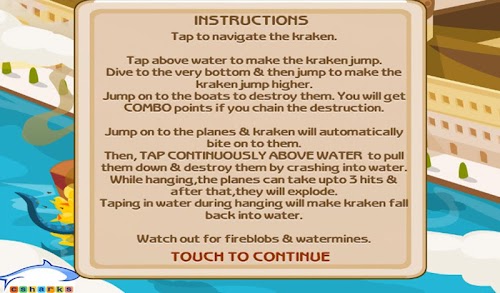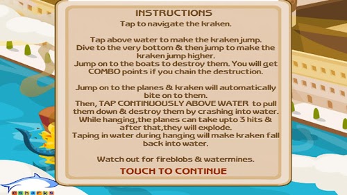 Kraken Attack is a side-scrolling sea warfare game. The hero of the war is a huge sea monster in the deep sea. Player controls the huge monster destroying anything that comes in its way, be it a ship, planes or innocent dolphins. The goal is to stay alive & score the maximum.