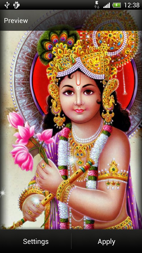 Krishna Live Wallpaper is a fun new live wallpaper for all worshipers of Krishna and people who like cool blue deities on their phone screen. Krishna is the most popular and widely known Indian deity. His skin color is blue and he looks truly divine. Download Krishna Live Wallpaper now for free and have this blue deity decorate and mystify your phone screen.