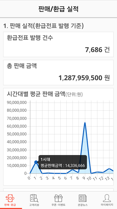 - 가맹점을 방문한 외국인 관광객의 구매 및 환급 실적을 다양한 기준으로 분석한 통계 데이터를 제공합니다. 기간별, 국적별, 성별 통계는 물론 가맹점의 더 나은 매출 향상에 도움이 될만한 고객 소비 패턴 분석 자료를 제공합니다.