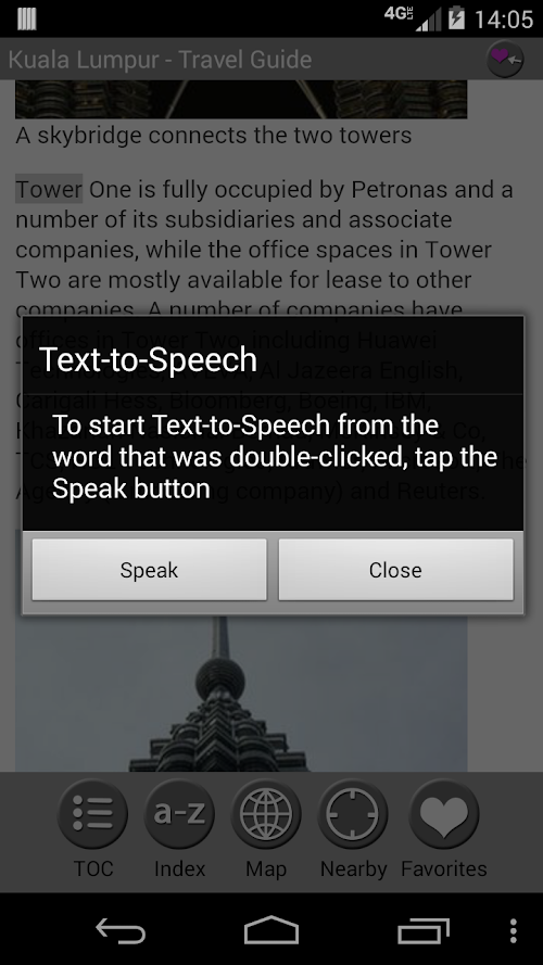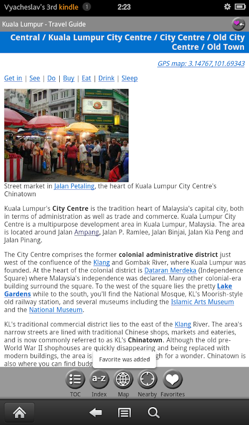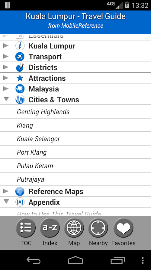 MobileReference Travel Guides provide detailed, practical information about attractions, landmarks, transportation, cultural venues, dining, lodging, history and much more. They are indexed alphabetically and by category, making it easier to access individual articles. Attractions can be viewed on an offline GPS map along with your current location so that you can easily find attractions near you as you explore the city.