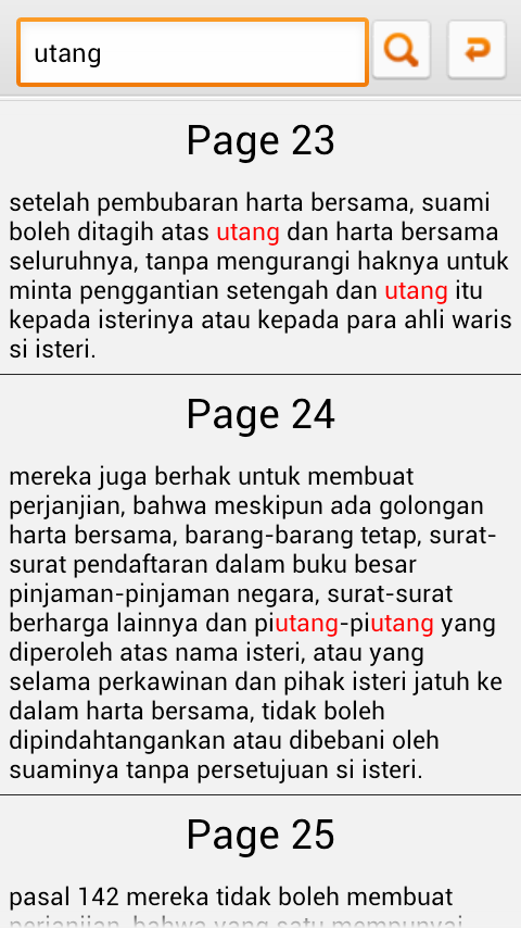 Dengan menggunakan aplikasi android ini anda dapat mencari beberapa pasal serta ayat dalam KUHPerdata yang bisa anda jadikan referensi. Jangan khawatir karena aplikasi ini anda dapat gunakan kapan saja sebab tidak membutuhkan jaringan internet.