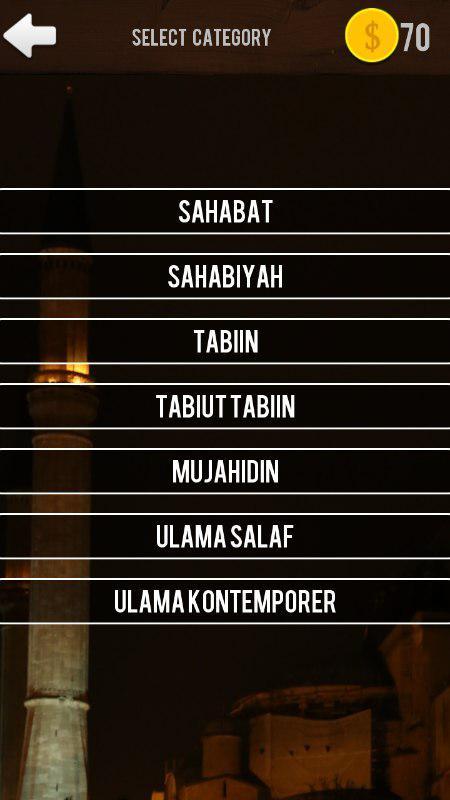 beberapa fitur dalam games ini. Total ada 70 pertanyaan di edisi perdana ini yang terbagi dalam 7 kategori. Semua pertanyaan terkait dengan pengetahuan tentang sejarah Islam, para sahabat, ulama dan mujahidin.