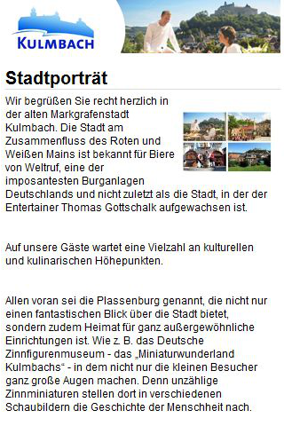 EINIGE FEATURES DES CITYGUIDE Kulmbach IM ÜBERBLICK: