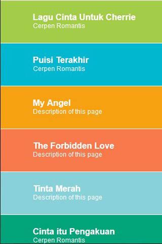 Applikasi ini berisi tentang kumpulan cerpen romantis. untuk anda yang hobby membaca cerpen. cocok untuk kamu yang sedang jatuh cinta.This application contains a collection of short stories about romantic. for your hobby read short stories. suitable for you who are in love.
