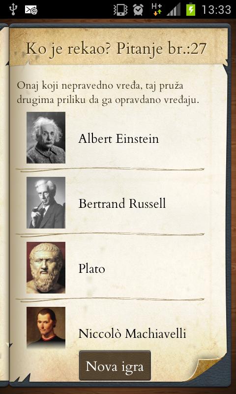 Pokrenite kviz "Ko je rekao" i za ponuđenu misao, pogodite njenog autora.