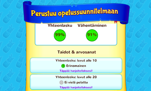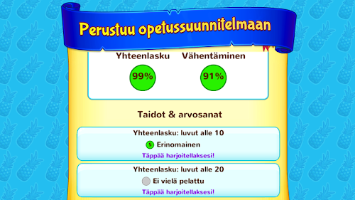 SanomaPro is Finland's leading producer of educational materials. The game is based SanomaPro's Kymppikioski math book series.