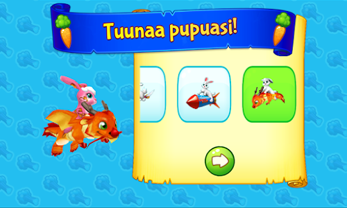 -oman pelihahmon muokkaus: valitse pupulle mieluisa väri, iloisia pukuja ja jänniä liikkumisvälineitä kuten lentävä matto ja rakettimoottori
