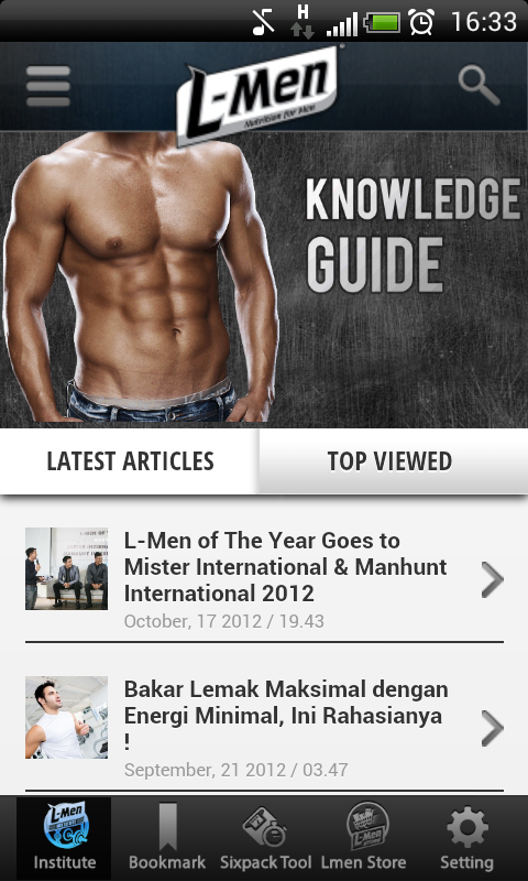 L-Men Knowledge Guide adalah aplikasi L-Men Knowledge Guide adalah aplikasi mobile berisi tips & trik lengkap terkait mobile berisi tips & trik lengkap terkait pembentukan tubuh atletis ideal, pembentukan tubuh atletis ideal, diantaranya: