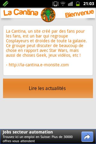 La Cantina, un site créé par des fans pour les fans, est un bar qui regroupe Cosplayeurs et droides de toute la galaxie. Ce groupe peut discuter de beaucoup de chose en rapport avec Star Wars, mais aussi de choses Geek, jeux vidéos, etc !