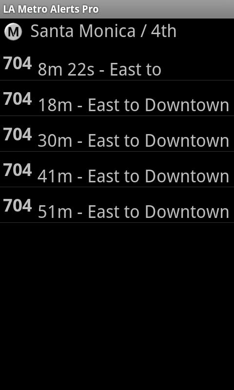 New pro version of LA Metro Alerts. Adds predictions by stop, predictions on the bookmarks list, ability to bookmark stops, distance to stops, ... Also adds other frequently requested features and provides a vastly improved overall UI.
