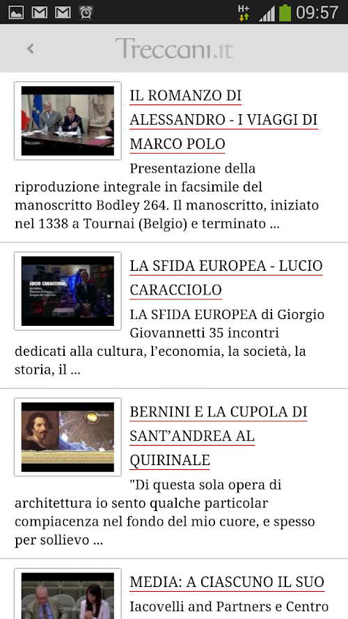 Inoltre sono disponibili nell’applicazione gli ultimi articoli di PEM (Piazza Enciclopedia Magazine) e gli ultimi video della Webtv Treccani.