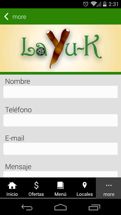 La Yu-K App es una poderosa, única y práctica herramienta que te permitirá acceder a nuestras ofertas, ubicación, galería de fotos, menú y además podrás realizar órdenes por medio de una llamada o tienda electrónica.The Yu-K App is a powerful, unique and handy tool that allows you to access our offers, location, photo gallery, menu and you can also place orders through a phone call or e-shop.