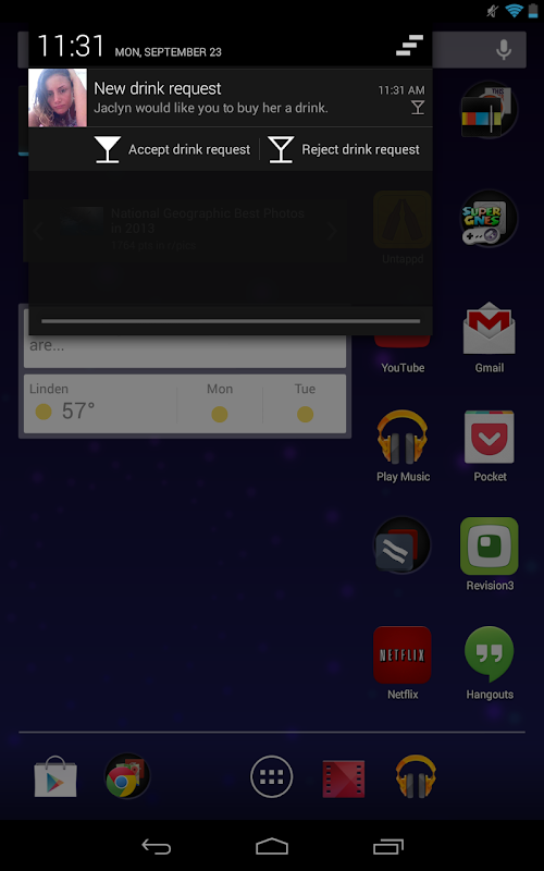 With Ladies Night, ladies always drink for free. Ladies Night is a must have for those in the bar and club scene. Guys can see girls that are at the same or nearby bar and club and offer them a drink, right through the app. If the girl accepts, the guy has to buy you a drink. Girls can see guys that are near them too and invite the guy to offer them a drink. If the guy accepts, he’s got to pay for the drink. Ladies Night is easy and fun to use and is a great icebreaker!