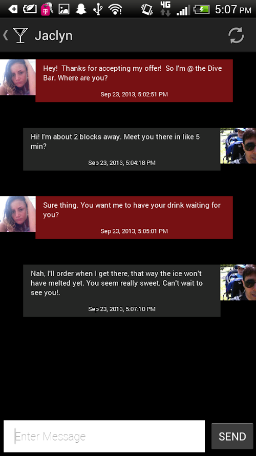 Check out who’s making the offer, accept the offer, meet by the bartender and drink up!