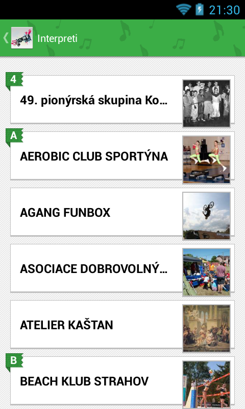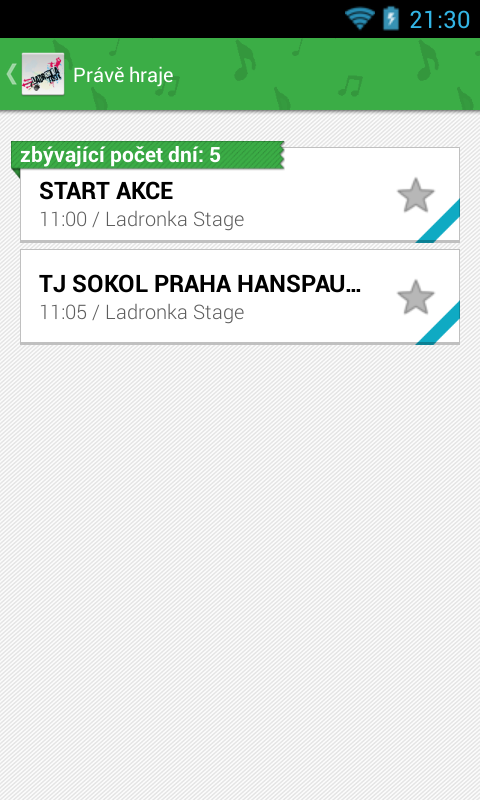 - Oblíbená vystoupení (aplikace upozorní 10 minut před vystoupením)