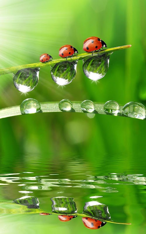 Ladybug Live Wallpaper brings you the most wonderful animated backgrounds of lovely red insects with tiny black dots. Enjoy these HD images of cute ladybugs, green grass and clear blue sky! You will absolutely love realistic nature inspired pictures and they will be the perfect decoration for your smartphone screen!