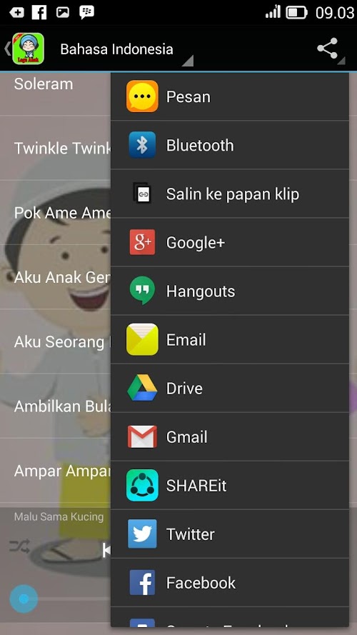 ini berisi lagu anak - anak dalam bahasa indonesia dan bahasa arab .
